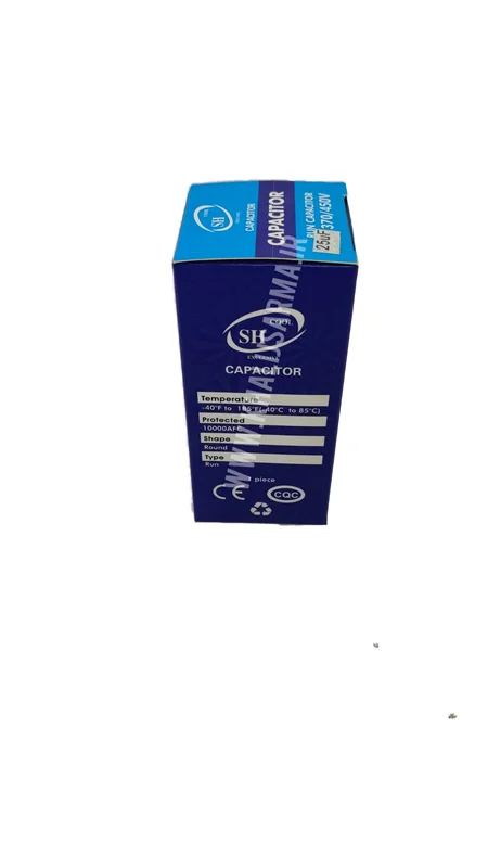 مشخصات این محصول (خازن روغنی برندHFC) خازن روغنی برند HFC دارای "دامنه ولتاژ 370/450 ولت"، "دمای کار 40- تا 85 درجه سانتیگراد" و "فرکانس 50/60Hz" است.